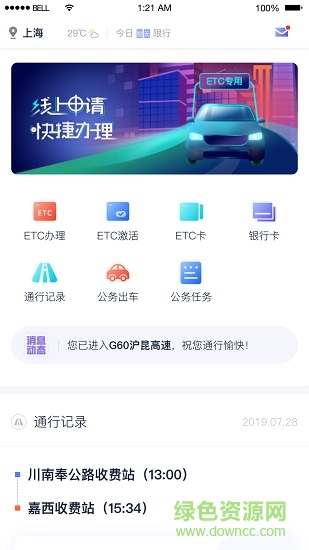畅行高速etc支持全国各省高速公路etc充值、路况查询,本软件为车主们提供了一站式高速公路驾车服务!可以实时获取最新路况信息,在手机上一键完成etc卡账户充值操作!需要的用户快来绿色资源网下载安装吧。