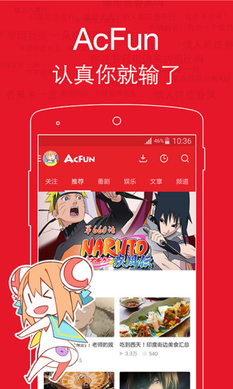 Acfun:弹幕视频网(http://www.acfun.tv)移动客户端,继承“天下漫友是一家”的主旨,以“认真你就输了”为文化导向,为二次元爱好者们提供高质量的ACG视频内容。