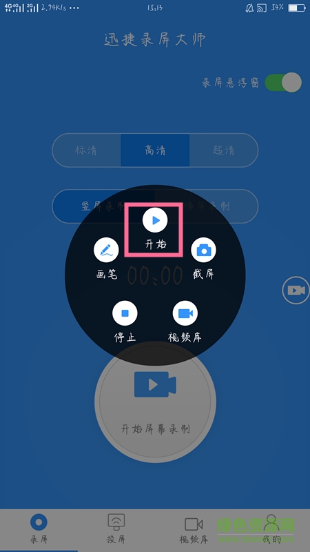 设置完成之后,点击开启右上角的录屏悬浮框,更加有利于我们的稍后操作,之后我们点击悬浮框上的开始即可录制我们的手机屏幕画面。