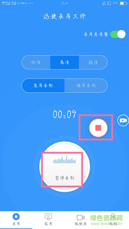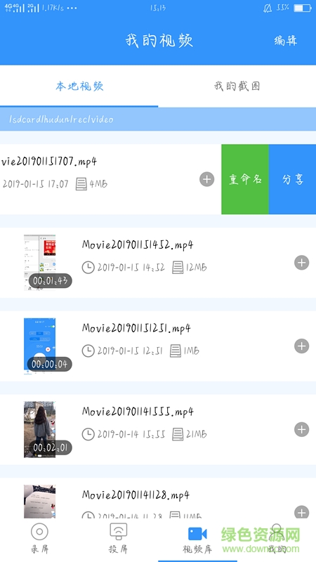 若是想查看本次录制,我们可点击底部导航栏上的视频库选项,在那里可以找到我们录制好的手机屏幕视频。
