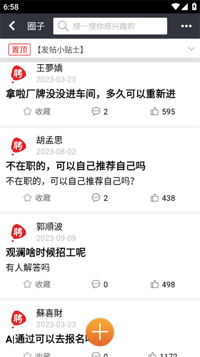 4、在圈子里面可以看到各种各样和工作岗位相关的问题内容,自己也能发布问题;