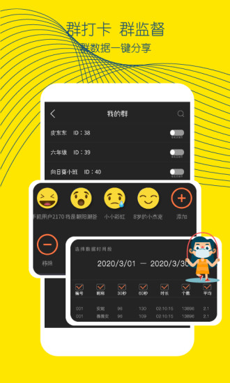 2、能连接智能跳绳的APP,用户可以找跳绳老师、找跳绳同伴,加群跳绳,群数据一键分享和保存;