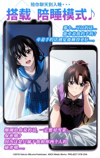 热门动画「噬血狂袭」中两位女主角「姬柊雪菜」(CV:种田梨沙)和「煌坂纱矢华」(CV:叶山郁美)的专属闹钟上线了!app中收录的「姬柊雪菜」(CV:种田梨沙)和「煌坂纱矢华」(CV:叶山郁美)的语音,全部为重新录制!容量高达180条以上。插图全部为SILVER LINK.全新绘制,前所未有的豪华阵容,总数达到了20张以上。还加入了计时器、印章等令人惊喜的功能。和雪菜、纱失华两人度过愉快的每一天吧!