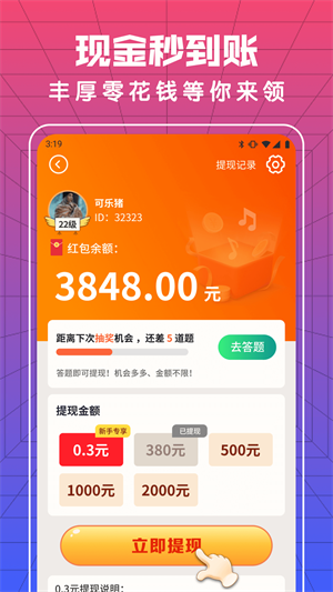 这款应用以其丰富的曲目和趣味的游戏模式,吸引了大批爱好音乐的玩家。无论你是音乐小白还是老手,都能在这里找到一份乐趣。同时,红包的设置让游戏更具吸引力。通过不断挑战,不仅可以提升音乐鉴赏能力,更能享受到与朋友共同竞技的快乐。