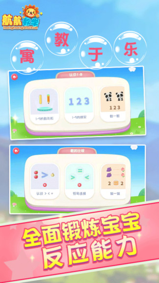 航航儿童数学逻辑思维早教启蒙可以帮助幼儿园的孩子完成早教和幼小衔接的问题,知识内容丰富多样,主要教简单的加减乘除问题,以游戏化的方式在娱乐中学习,可以全面促进大脑发育,打好数学基础,欢迎有需要的朋友下载使用!
