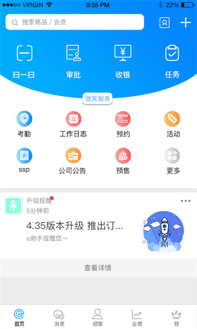 E店主企业版面向服装鞋帽行业终端销售顾问设计开发的一个销售管理APP平台,是实现服装鞋帽业行业新零售商业模式不可或缺的利器。实现公司管理层和一线销售人员的链接零距离、管理AI模式,实现了销售顾问对顾客(消费者)的专属管理及服务,实现了实时通讯,顾客分析、促销活动、分裂活动精准推送。