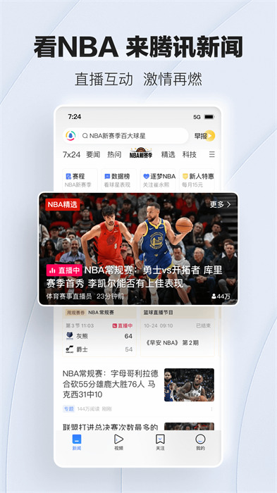 腾讯新闻app是腾讯新闻网的手机app应用,是腾讯公司打造的手机新闻资讯软件。提供最新最丰富的国内外资讯,还有各种新闻直播、体育直播等,用户还可以订阅自己喜欢的频道。赶快下载体验吧!