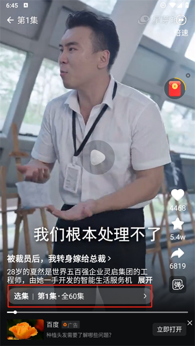 3、进入后可以看到该短剧的点赞人数和收藏数量等等,如果要跳转集数可以在这里找寻;