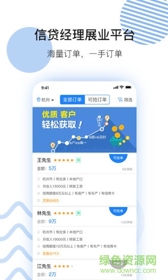 云客来获客app是专为开信贷公司的朋友们提供一款抢单服务软件,在这里你可以直接根据客户的需求来进行抢单,满足客户的需求,还能进行客户管理等操作,功能非常的齐全而且实用,有需要的朋友快来使用吧!