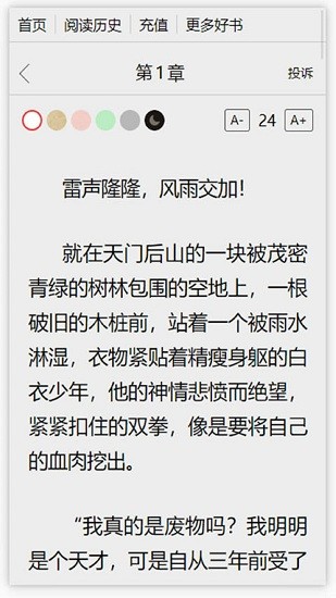 全馆支持阅读模式,满足懒人的各种阅读的需求