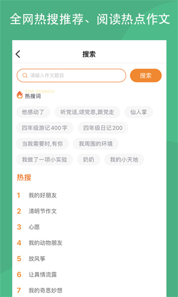 1、全新的搜索功能,可以通过输入作文题目即可快捷查找;