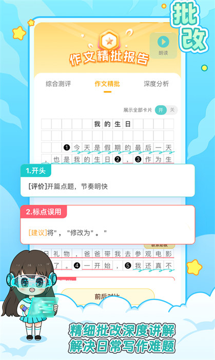 3.权威点评:作文均由写作名师专业评定,等级评分、好句标红、并给出专业评语!