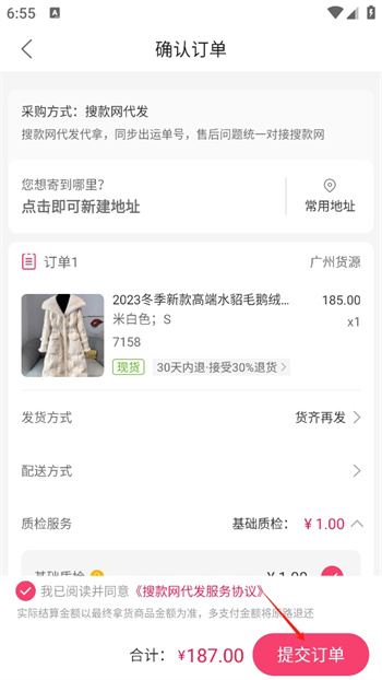 用搜款网进货,你只需要专心经营店铺,采购发货等一系列的麻烦事,交给搜款网的专业物流团队帮你解决,让我们帮你拿货、质检、打包、发货。再也不用起早贪黑跑市场。