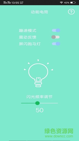 普通模式:每摇晃一次手机给手电筒供电,使用时间+1s,供电后会自动开启手电筒