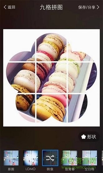 最美九宫格可以把一张图片切割成9张,通过不规则的组合组成大图,分享到朋友圈、微博等地方。