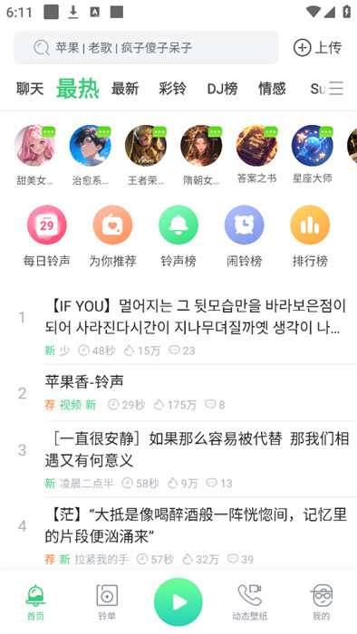 火热手机铃声、经典老歌、个性Diy彩铃(炫铃)……快来看看大家都在搜什么吧。