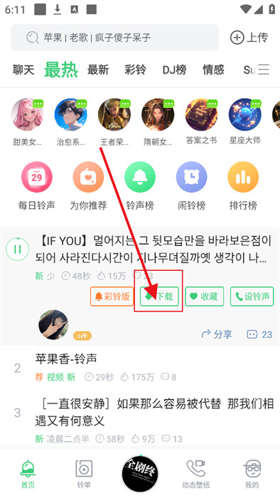 2.最热,最新,分享,地域,彩铃榜单,第一时间获取你最想要的铃声。