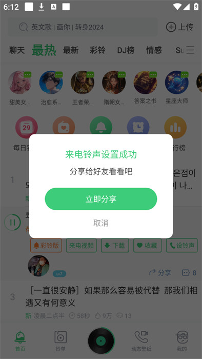 热门歌曲铃声、彩铃(炫铃),每日更新1000+