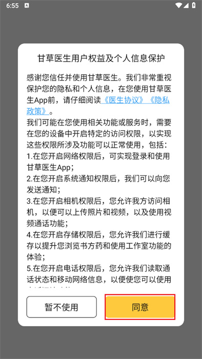 1、首先需要同意用户隐私协议,点击屏幕右下角的【同意】按钮即可;