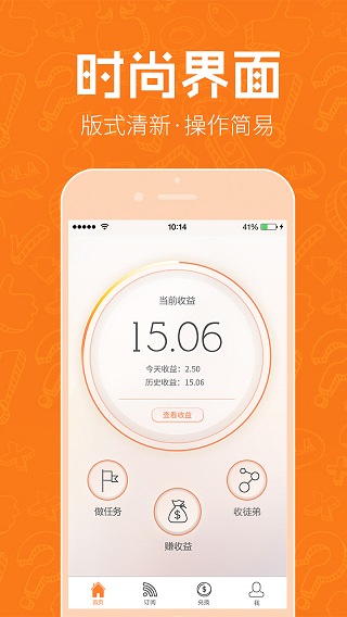 4. 点击做任务与赚收益就可以开始赚钱了,阅读广告、分享广告、做任务…都可以让你手到钱来。如果您使用的是安卓系统的手机,还可以通过划屏解锁和下载感兴趣的应用来赚钱,获益方式更丰富;