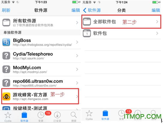 3 添加源完成后点击进入“游戏蜂窝-官方源”,再点击“全部软件包”,然后点击“游戏蜂窝”安装,安装结束后点击重启SpringBoard重启手机即可使用游戏蜂窝!让你体验换个姿势玩手游的**!