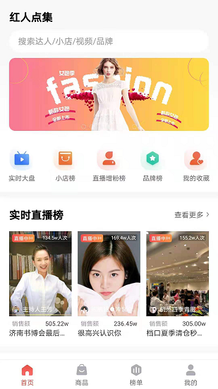 3、各类目达人、商品、品牌、店铺榜单,红人点集通过精准数据分析。