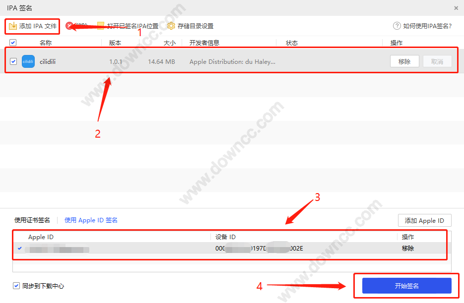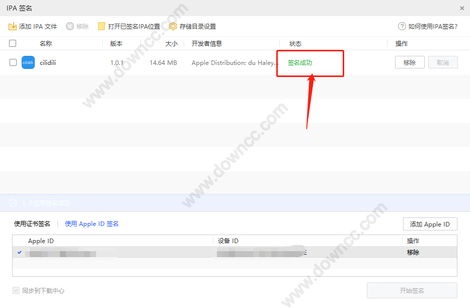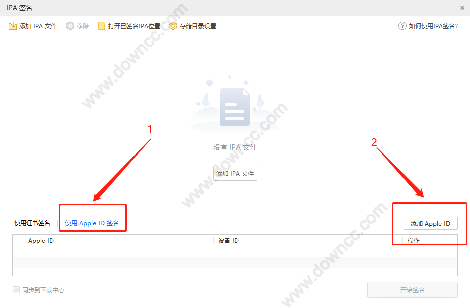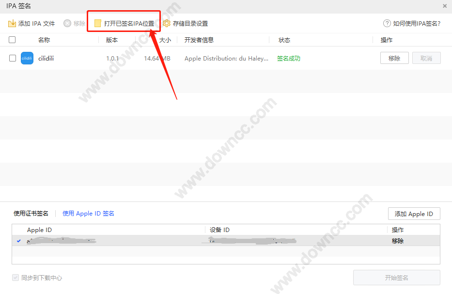 添加完成之后,就可以添加IPA文件了,然后就选择appid签名,记得点一下,然后就可以开始签名: