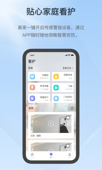 支持通过APP远程控制设备,查看设备报警信息等,实现智能安全的家庭看护