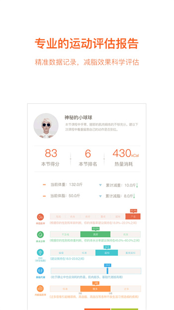 快快形值报告让你把自己的体形状况了解得清清楚楚,并通过快快云平台,为你适配由快快潜心研发的线上减脂课程,只针对于你哟!