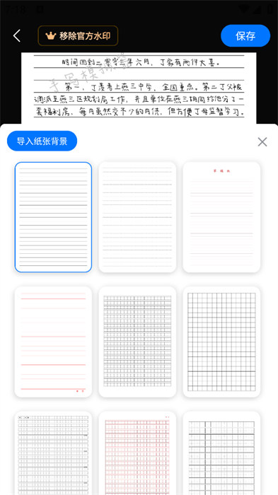 3、可以选择自己想要使用的纸张背景,还能够导入自己手机本地里面储存的纸张背景;