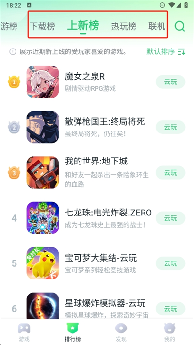 1、进入到平台页面后可以看到有超多的游戏资源可以选择,可以直接在榜单中快速找寻游戏;