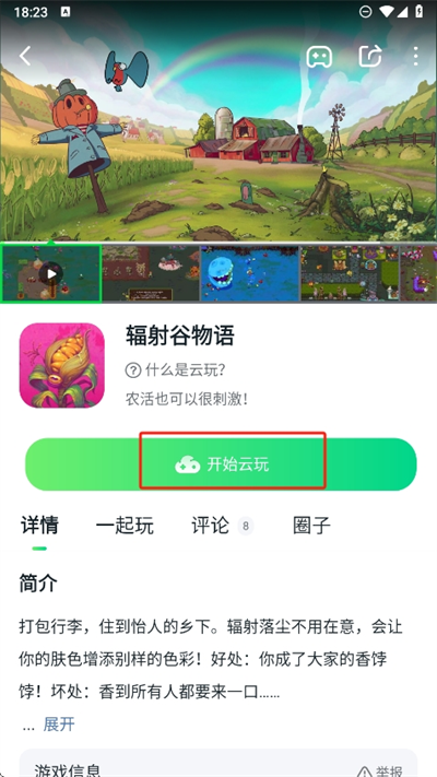 4、进入后不仅可以看到宣传的视频还有有关游戏的介绍等,想要玩这个游戏直接点击开始云玩就可以了。