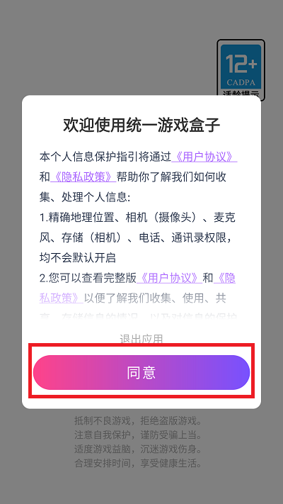 1、打开软件,进入的时候需要同意其中的软件条款,如果不同意是无法使用的;