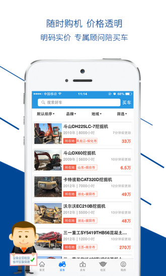 铁甲二手机app是一款提供二手机械交易的服务应用,买卖二手的挖掘机、装载机都可以到这里来,这里是最大的工程机械交易平台,这款铁甲二手机客户端掌上查询产品信息,交易更加的快捷,欢迎下载使用。
