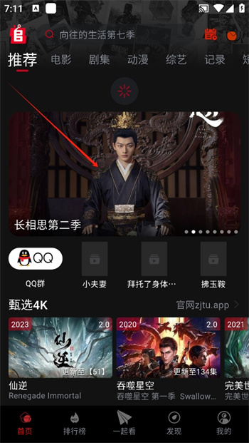 1、首先进入软件的首页,在这里找到你想要观看的影片,这里小编以画面中的长相思这款软件为例子点击进入;
