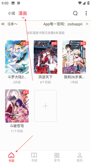 打开APP首页,在书架中可以看到已经收藏的漫画