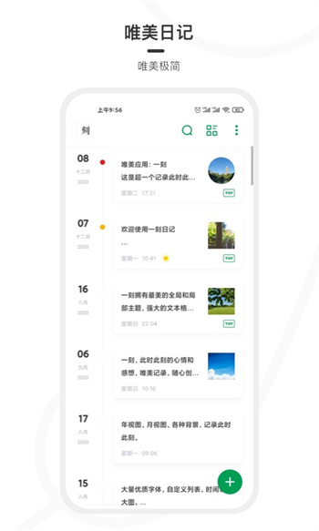 记录此时此刻。一刻为您提供一个思考、记录、和发现的日记平台。记录每一天的感想,天气或日常,短暂放下手上的工作,静静的去聆听我们这一刻的内心想法。我们非常荣幸地向您推荐全新一代的日记应用:一刻,为了绝佳的日记体验而创作的唯美app。