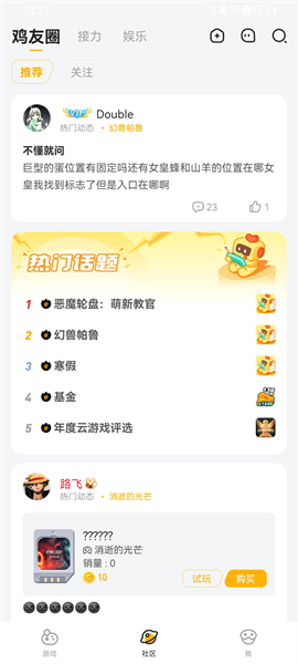 4、点击社区【鸡友圈】有超多网友发表问题看法等等,还有超多的热门话题,用户可以积极参与,一起探讨;