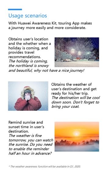 情景感知服务提供获取用户当前时间、地理位置、活动状态、耳机状态等情景感知能力,调用这些能力,您的应用可以更高效地洞悉用户当前所处的情景,为用户提供更加智慧和贴心的体验。