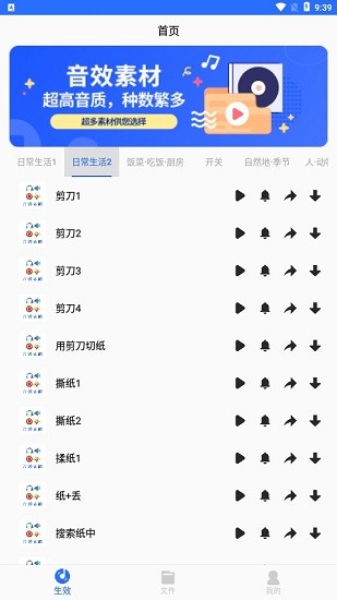 2、海量音效,数据丰富,音效素材之家app中导入了非常丰富的各种优质音效数据内容,用户可以自由的来使用各种不同类型的音效内容,感受独特的逼真效果;