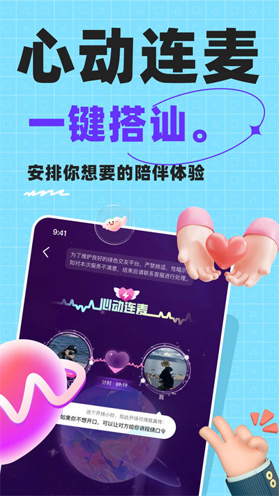 2、语音聊天交友互动平台,语音互动,在线聊天,随时发送语音消息,认识兴趣相投的小伙伴,与好友轻松沟通交流、交友更放心;