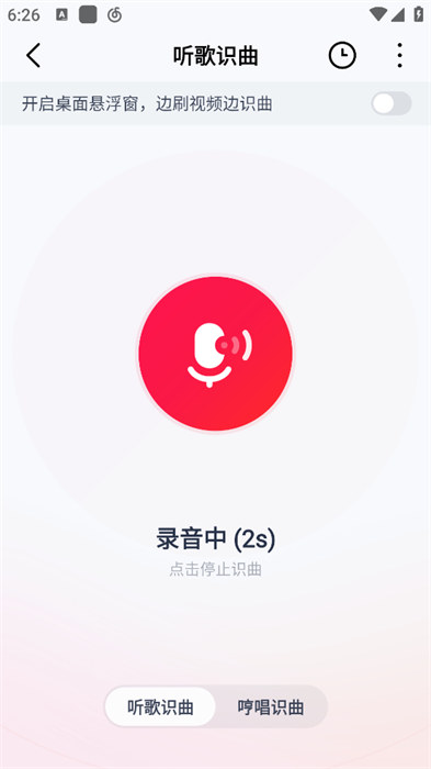 4、还可以进行听歌识曲的操作,就算用户们在其他应用里面听到了好听的歌曲也能开启悬浮窗去进行识别;