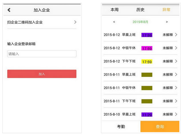 4、员工账号便可以方便的进行考勤打卡、请假、审批等。