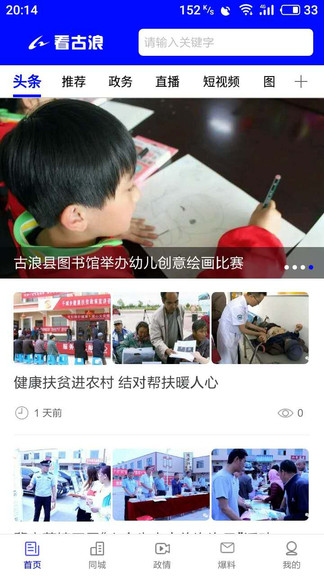 看古浪是古浪县本地的一款新闻融媒体中心客户端app,在这里主要是每天更新当地的各种新闻时事让用户能够非常清楚的了解到当地发生的各种事情。在这里还能收看本地的电视直播频道,随时随地想看就看,还有各种短视频,图文等等讯息以及各种本地服务功能,方便快捷。
