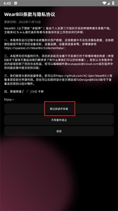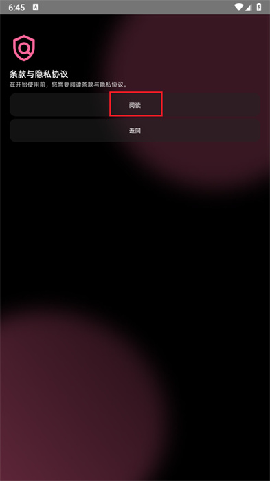 2、此时可以点击【阅读】按钮来进行隐私协议的阅读;