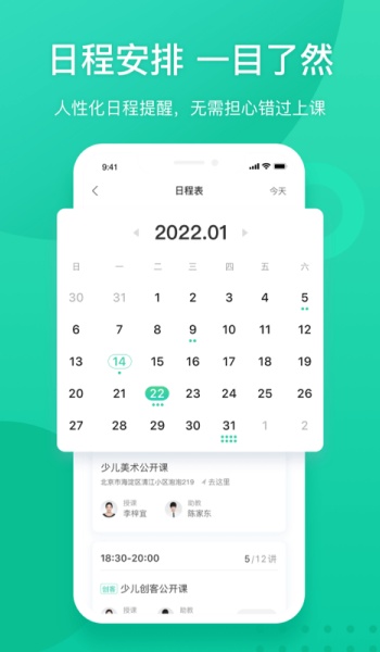 根据家长当前定位的城市,为家长推荐附近的校区,提供全部校区列表,方便家长去门店咨询课程信息,报名上课。