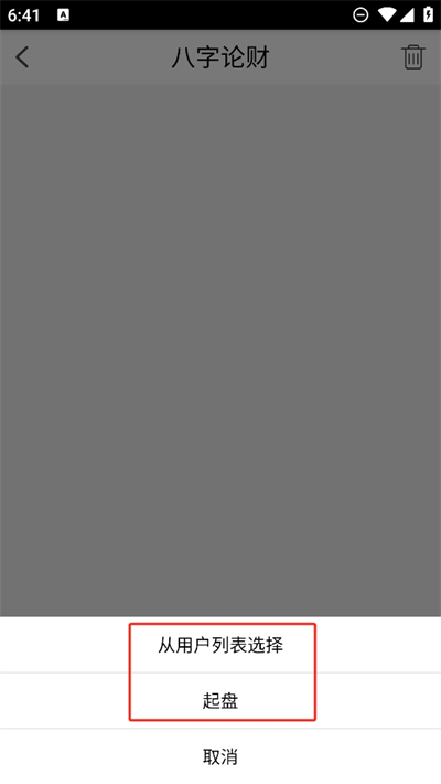 3、在这里可以看到有从用户列表选择、起盘两个选择,如果没有在用户列表里添加信息的直接点击解锁起盘;