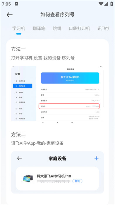 3、我的:绑定并查看学习机设备、切换设备、解绑设备、寻求客服支持等。