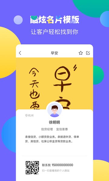 海豚展业是一款为信贷员提供学习与交流的软件,您可以定制属于您的名片与海报,并分享给需要的人,同时将您的同行存储在您的APP中,便于随时联系。