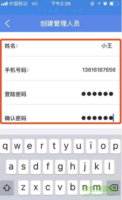 进入‘人员管理’界面后,点击【立即创建】,输入管理员的‘姓名’/‘手机号’/‘密码’